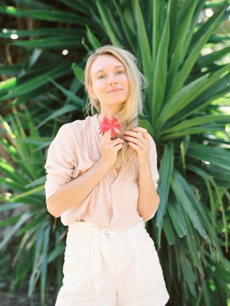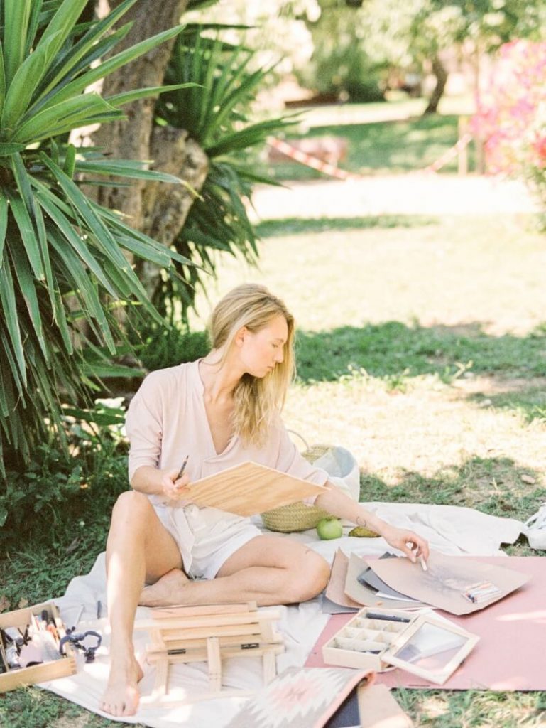 Sunny day in greed garden near Santa Fe with Nancy Brook